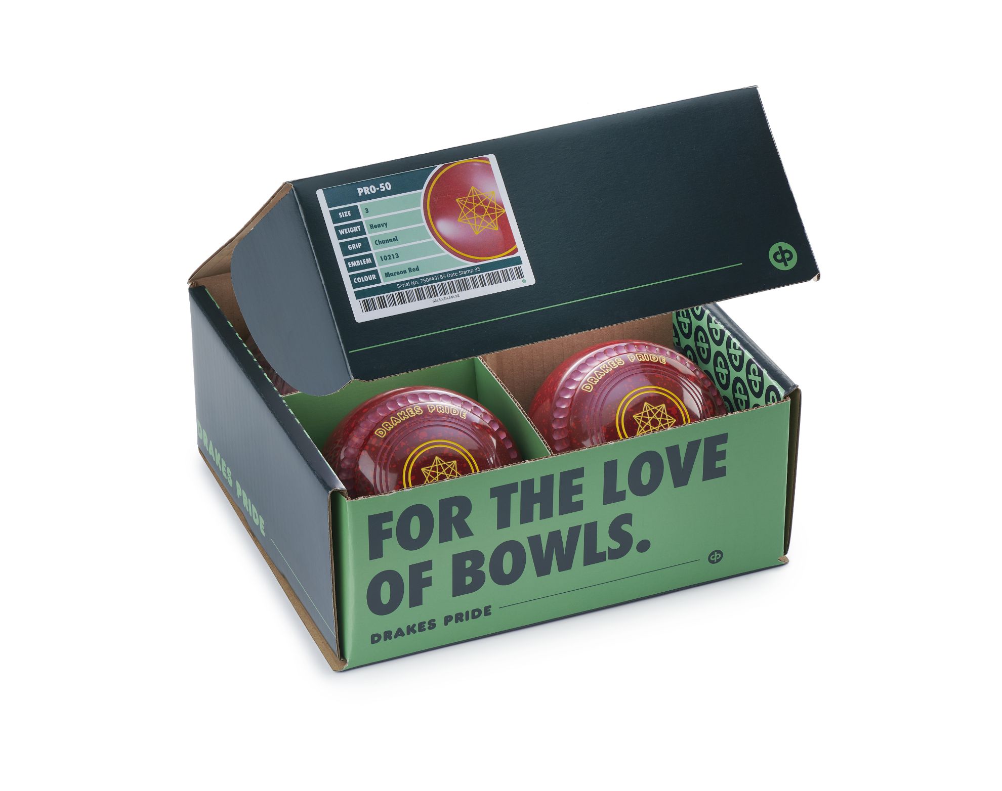 The PRO-50 is identical in profile and performance to the incredibly popular Professional model, the only difference is in the revolutionary grip developed by Drakes Pride. Known as the 'Channel Grip', this grip is unlike any other currently offered. This grip quite literally creates two deep channels in the bowl which have been found to help many players improve control over their bowl during delivery and in many cases have even enabled players to comfortably deliver a larger size bowl than they usually could.